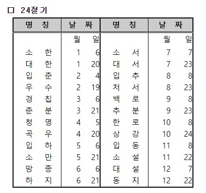 2023년 24절기 날짜
