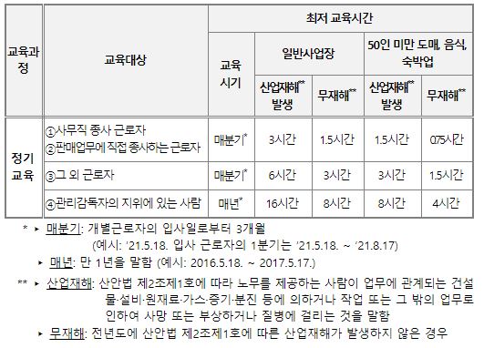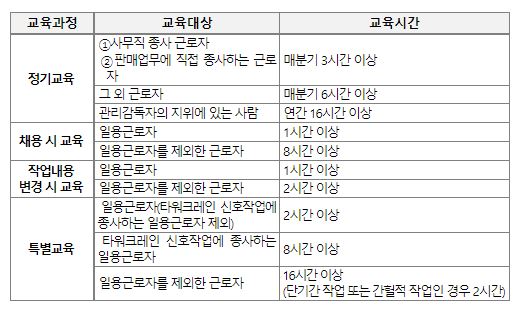 - 위 업종은 안전교육만 제외,보건교육 실시