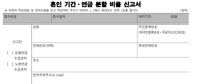 - 혼인기간 연금 분할 비율신고서