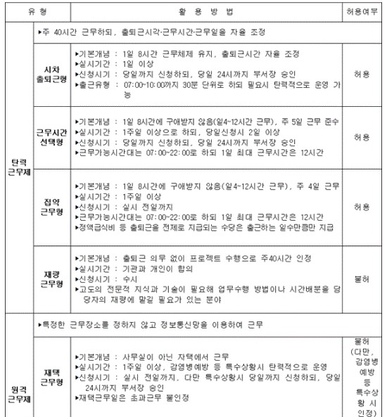 유연근무제 종류 유형