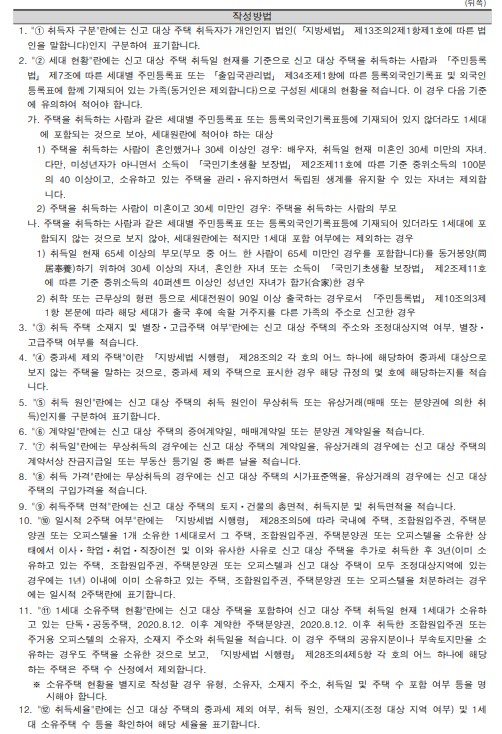 주택취득과 관계된 별도의 상세 명세서를 작성해야 합니다.