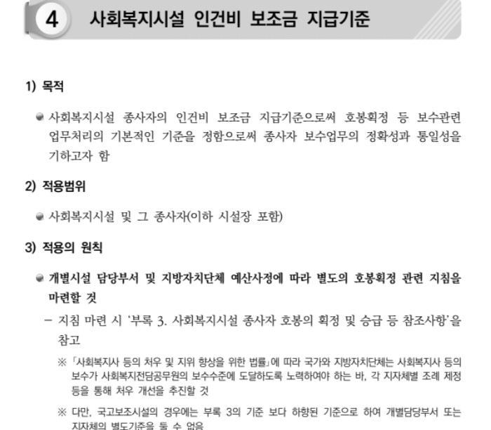 사회복지시설은 대부분 보건복지부를 통해 인건비 보조금을 지급받고 있습 니다.