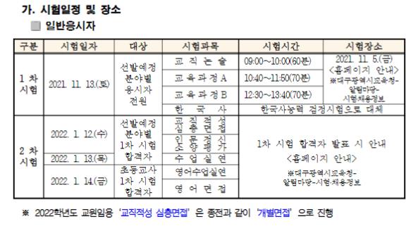 | 2차시험 | 2022.1.12~ 2022.1.13 (수요일~목요일 2일간) |