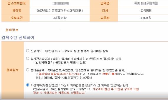 홈페이지에 접속하면 신규영업자 교육과 기존영업자 보수교육 페이지가 별도로 되어 있습니다.