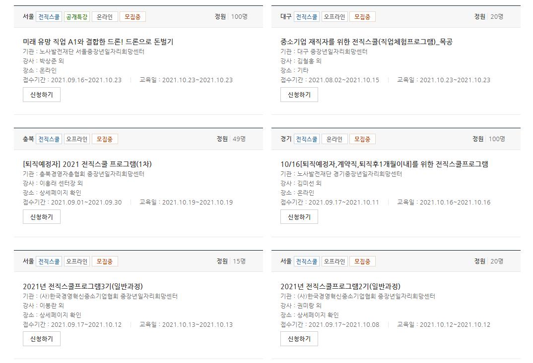 전직 스쿨 프로그램도 많이 있는데요 드론 자격증,목공 등 다양한 전직스쿨프로그램을 통해 교육을 이수 받을수있습니다.