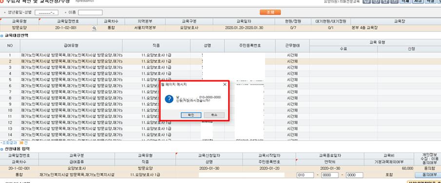 교육대상을 더블클리구 신청내용입력해서 교육대상 인적사항을 확인합니다.