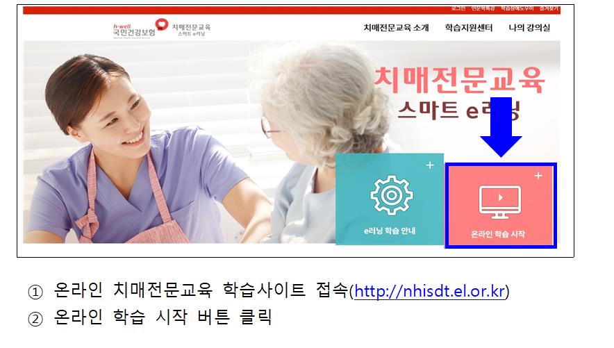 치매전문교육 스마트e-러닝 홈페이지(nhisdt.el.or.kr)