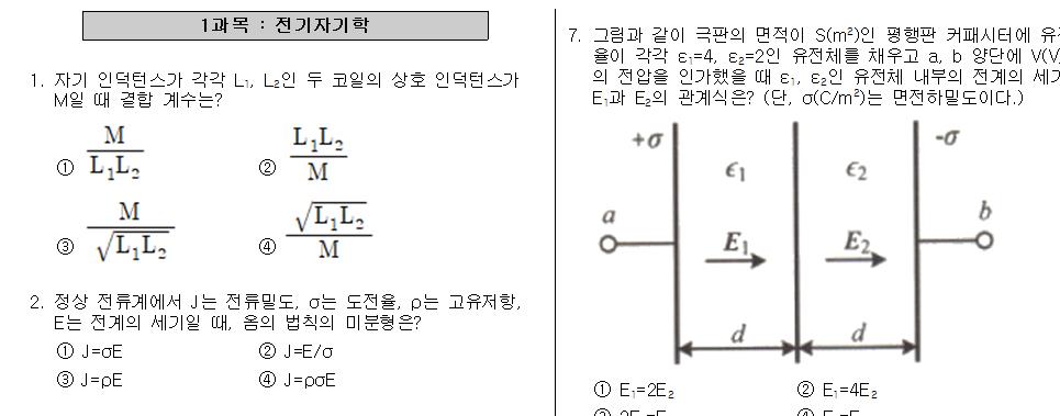 전기기사 시험 최근 출제된 문제들중 하나를 PDF파일버전과 HWP버전으로 공유드립니다.