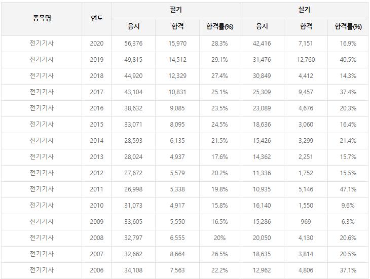 전기기사 시험 합격률
