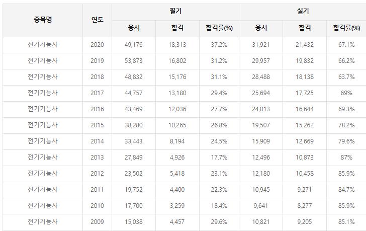 전기기능사 시험 합격률