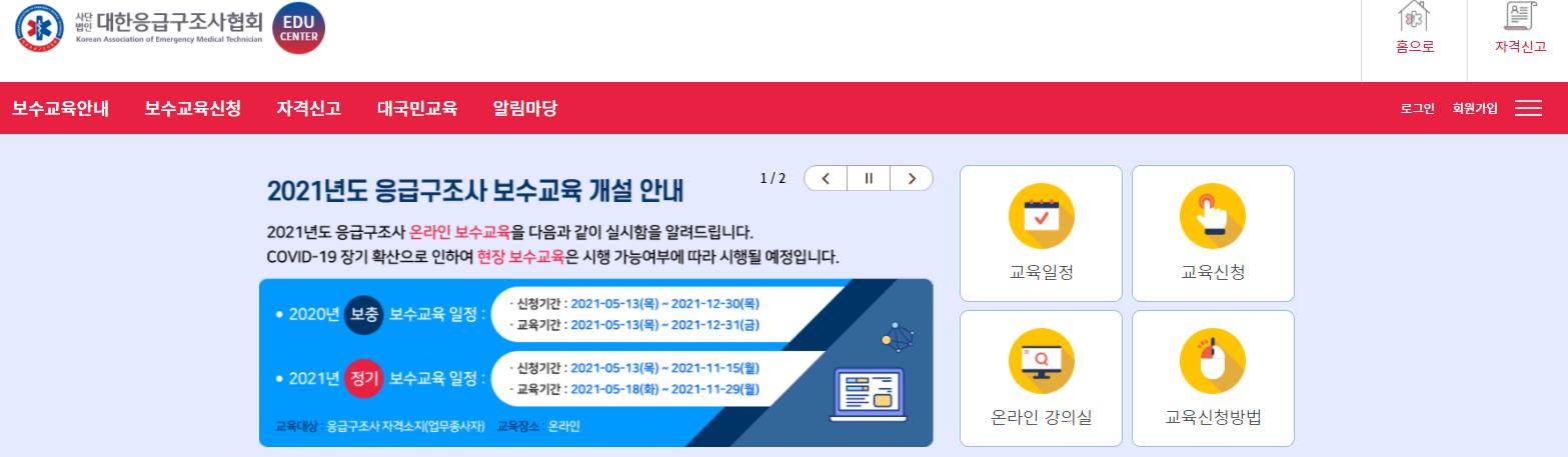 응급구조사 온라인 보수교육을 신청할수 있는 홈페이지 입니다.