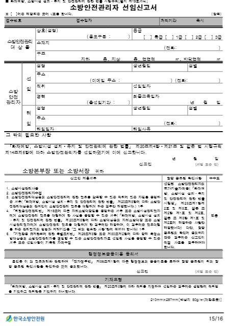 소방안전관리자 선임기준,자격 경력 확인,선임 신고 방법(신고서 예시 서식)