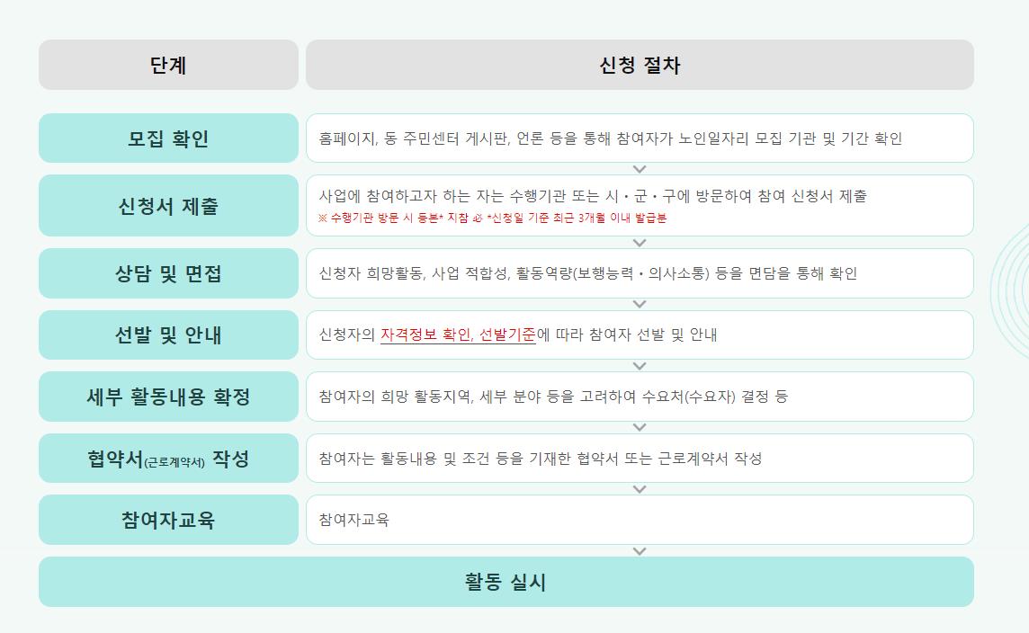 이런 노인일자리 여기 홈페이지에 올라오는 구인구직 광고를 확인후 신청서를 시,군구,수행기관에 제출하면됩니다.