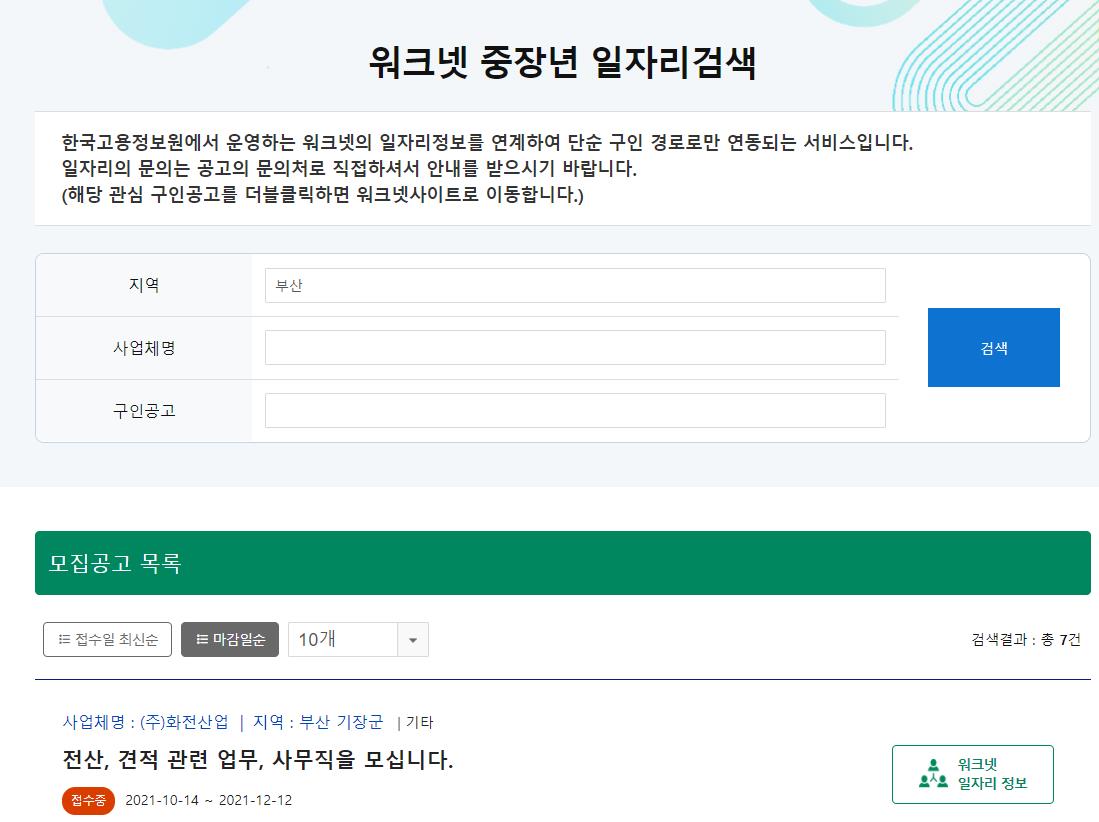 노인일자리 여기 홈페이지에서 워크넷 중장년 일자리 검색과 연동해 찾아볼수 있습니다.