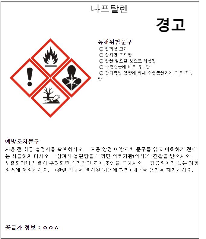 화학물질명과 추가적으로 필요한 내용들을 편집하여 유해 위험문구와 예방조치문구등을 작성해 비치합니다.