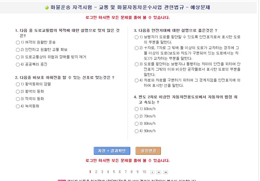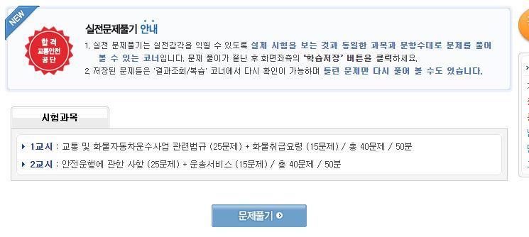 바로테스트라는 페이지에서는 화물운송자격시험뿐만아니라 택시운전자격시험 기출문제도 볼수 있습니다.