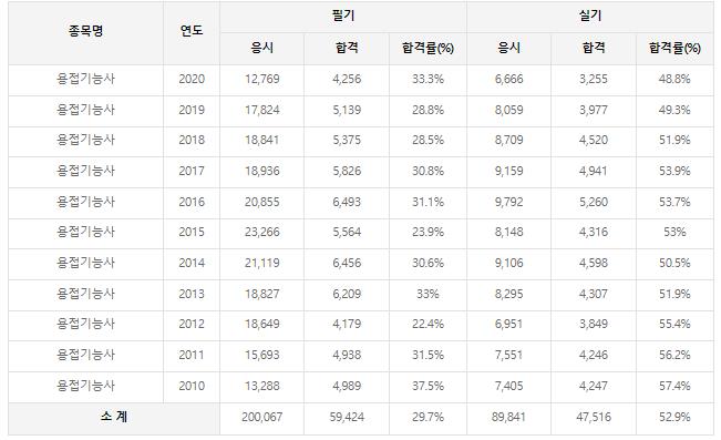 용접기능사 시험은 매년 필기시험에만 1만 7천여명 이상이 응시할정도로 인기가 많은 자격증입니다.