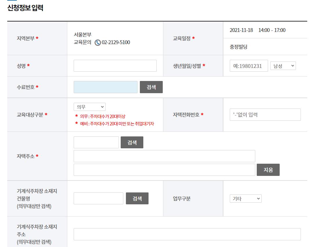 관리인교육은 관할지역에서 교육을 이수해야합니다.