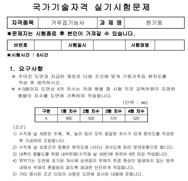 자세한 거푸집 기능사 실기시험문제는 아래 첨부파일을 다운받아보시면 확인하실수 있습니다.