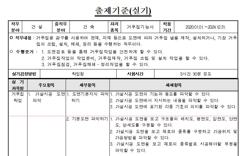 거푸집 기능사 실기문제는 2021년 기능사 3회부터 표준화되어 문제를 공개하고 있습니다.