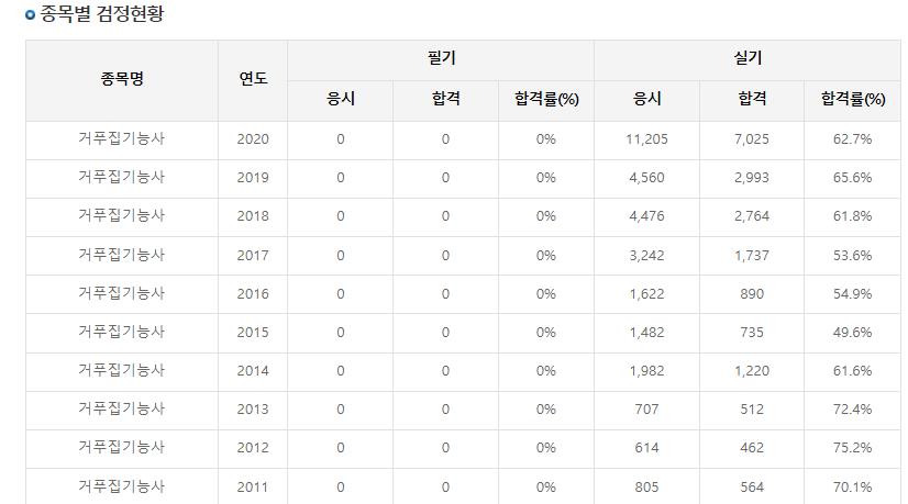 실기시험 합격류은 보통 50~60%내외의 합격률이 나왔습니다.